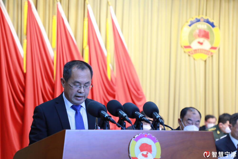 县政协主席武永生代表政协第十一届宁津县委员会常务委员会,向大会报告工作。报告分两部分,一、2022年:围绕“谋划开新局、奋进新时代”履职尽责;二、2023年:锚定加快建设“活力新城、幸福宁津”凝心聚力。